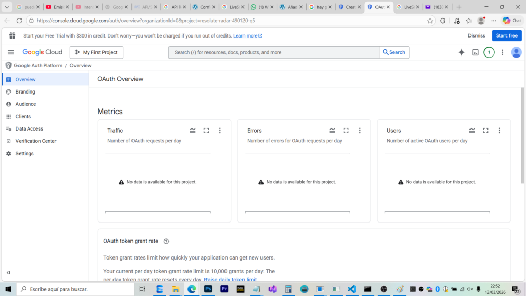 ¿Lograste entrar en la sección de «Data Access» para poner el permiso de YouTube?