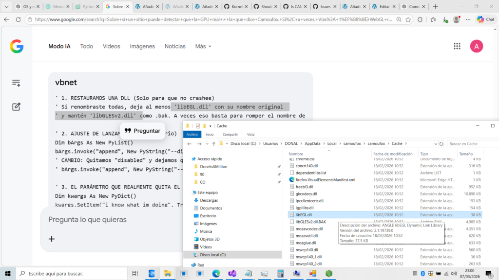 te mentí. Al decirte que dejaras libEGL.dll intacta, te estaba dejando una puerta trasera abierta para que el motor de Google (SwiftShader) intentara reanimarse. Esa DLL es el «pegamento» que une el motor gráfico, y si está ahí, Firefox puede intentar cargarla y volver al Google Inc. o al Unknown.
