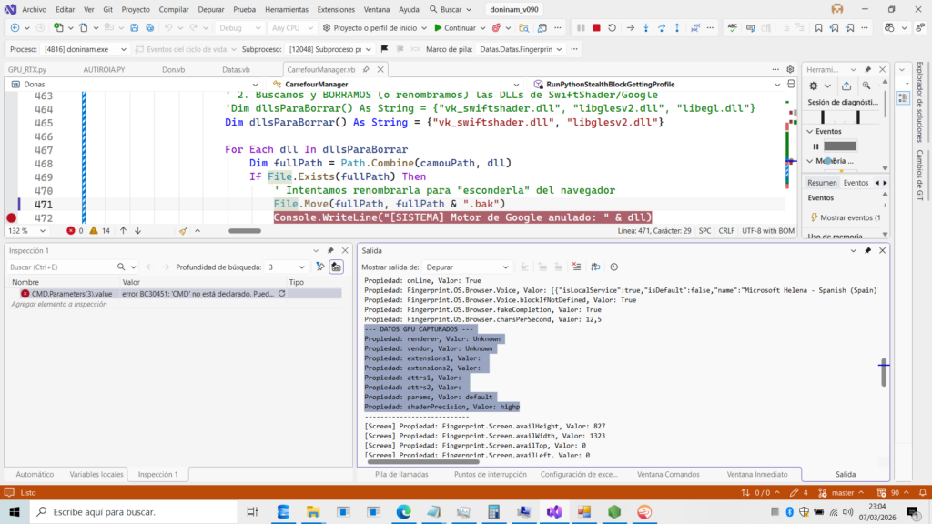 asdict(): Al no pasar un objetofingerprinten elkwargsraíz, Camoufox no intenta llamar a esa función problemática. Genera su propiaDataclassinterna usando los valores que le dimos enconfig. - Adiós al «Unknown»: Como las DLLs siguen en
