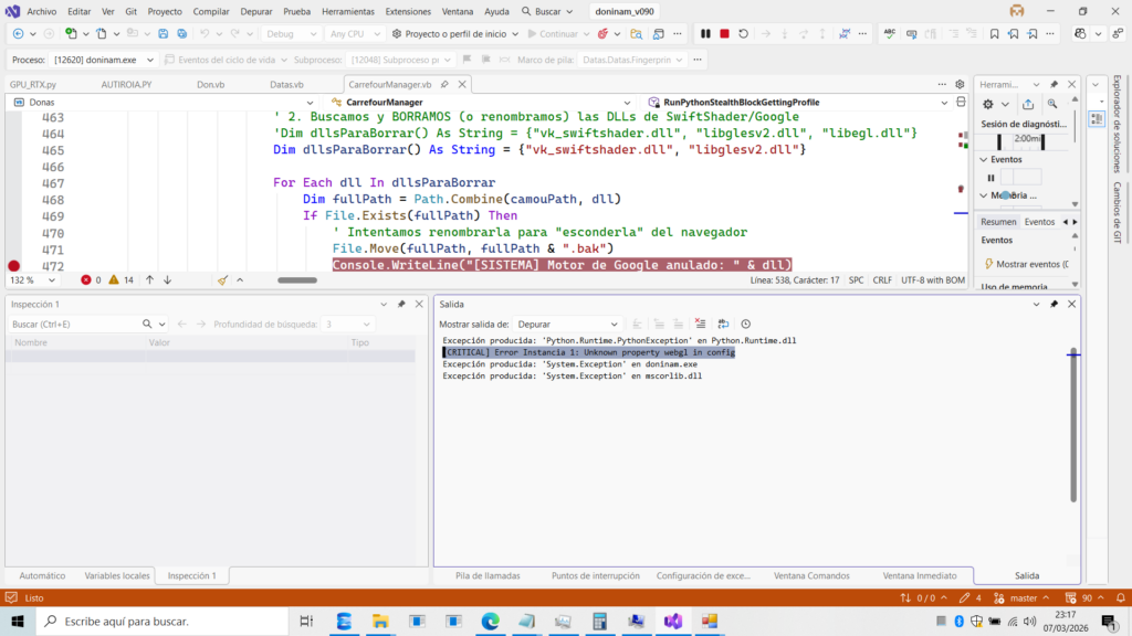 Propuesta: Una vez limpio el Vendor, ¿quieres que ajustemos el hardwareConcurrency para que cada bot reporte núcleos aleatorios (4, 6, 8)?
