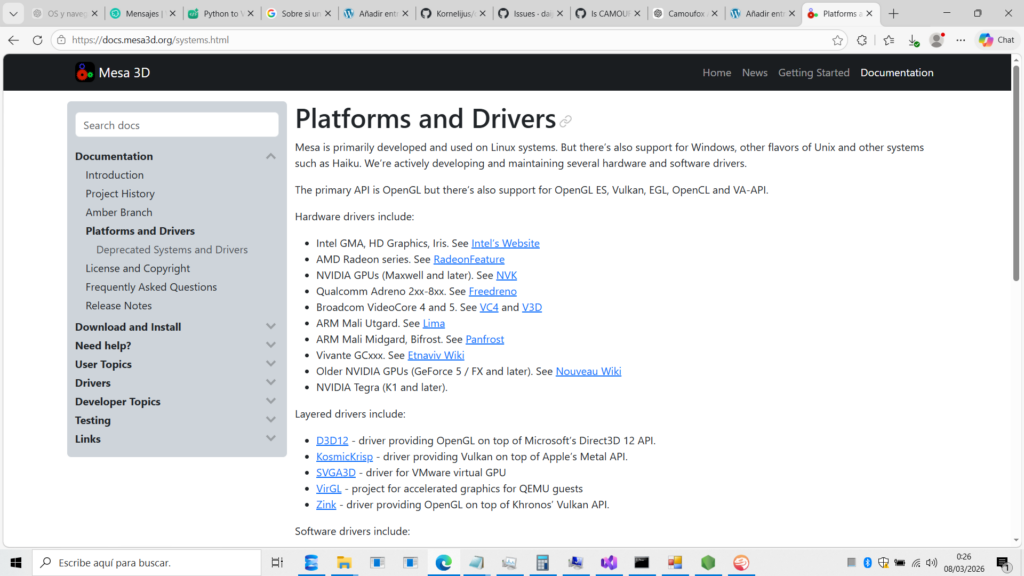' Al tener un motor vivo (Mesa), Camoufox podrá inyectar el Intel/AMD